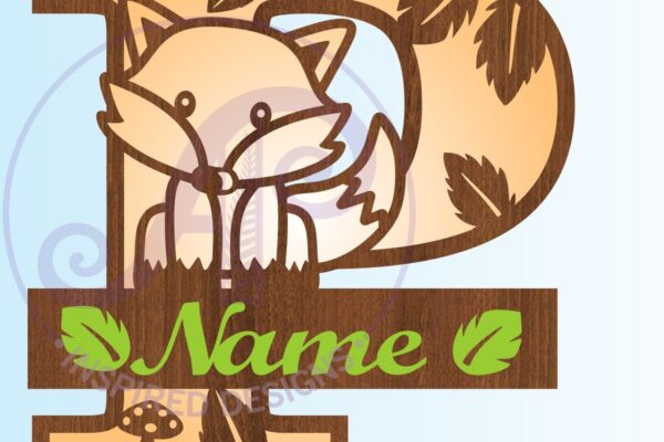 Intra απο ξύλο plywood 3mm-4mm πάχος – Fox Monogram Letter P Cut File Δίασταση 30×20 cm INTRAFABR-69923935