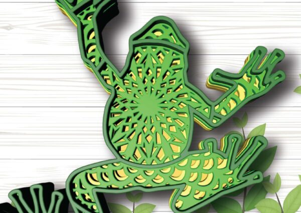 Intra απο ξύλο plywood Χρώμα wenge 3mm-4mm πάχος – Frog, 4 Layers, 3d Mandala Δίασταση 30×30 cm INTRAFABR-108000675