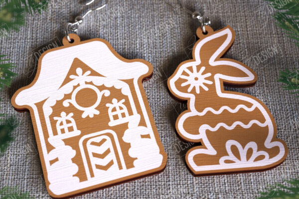 Intra απο ξύλο plywood Χρώμα wenge 3mm-4mm πάχος – Gingerbread House Earrings Bundle | CNC Δίασταση 3×3 cm INTRAFABR-72001397