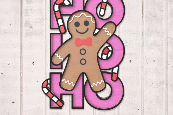 Intra απο ξύλο plywood 3mm-4mm πάχος – Gingerbread Man HO HO HO Sign Laser Cut Δίασταση 30×20 cm INTRAFABR-106853543