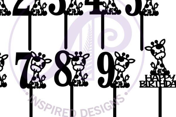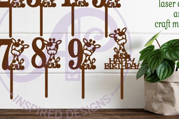Intra απο ξύλο plywood Χρώμα wenge 3mm-4mm πάχος – Giraffe Number Cake Toppers, 10 σχέδια Δίασταση 20×20 cm INTRAFABR-28604580