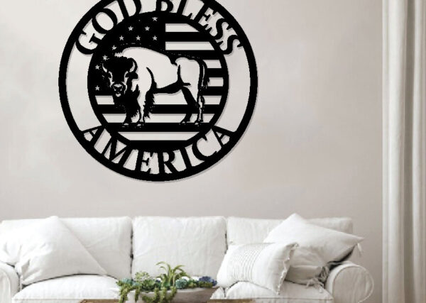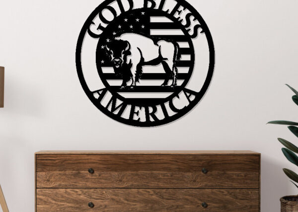 Intra απο ξύλο plywood 3mm-4mm πάχος – God Bless America, Bison Metal Sign Δίασταση 3600×3600 cm INTRAFABR-99390982