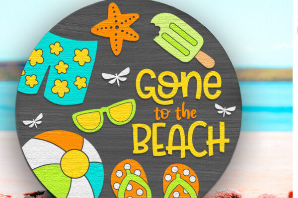 Intra απο ξύλο plywood Χρώμα wenge 3mm-4mm πάχος – Gone to the Beach , Summer Door Sign Δίασταση 10×10 cm INTRAFABR-93643604