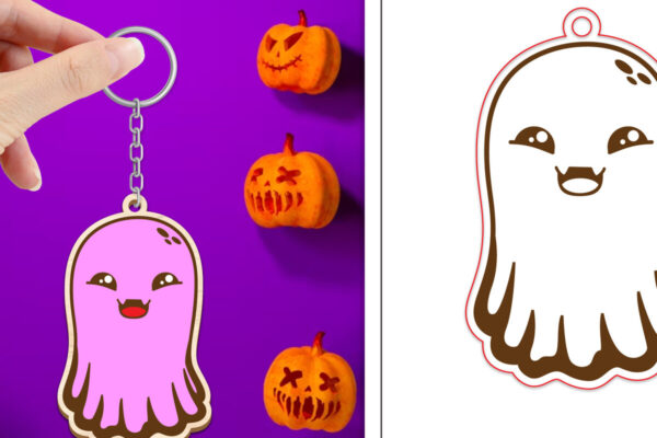 Intra απο ξύλο plywood Χρώμα wenge 3mm-4mm πάχος – Halloween Cute Ghost Keychain Δίασταση 4×4 cm INTRAFABR-9435263