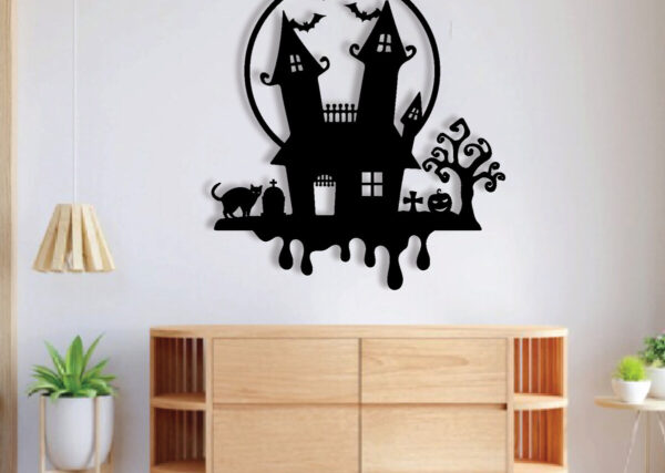Intra απο ξύλο plywood 3mm-4mm πάχος – Halloween House Μεταλλικός τοίχος Τέχνης με λέιζερ Δίασταση 40×50 cm INTRAFABR-78945455
