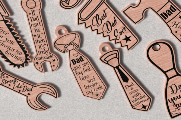 Keychain για την Ημέρα του Πατέρα Πρόκειται για ψηφιακό σχεδίου, ιδανικό για κοπή με ή plotter. Κατασκευασμένο απο Ξύλο από plywood [3mm ή 4mm], κομμένο με ακρίβεια στην βιοτεχνία Intrahome . Το φυσικό ξύλο προσφέρει μια κομψή, αυθεντική υφή και μπορεί εύκολα να βαφτεί ή να διακοσμηθεί σύμφωνα με το προσωπικό σας γούστο. Ελληνική παραγωγή – Κατασκευάζεται στην Ελλάδα με προσοχή στη λεπτομέρεια και υψηλές προδιαγραφές ποιότητας. ✔️ Υλικό: Plywood υψηλής ποιότητας ✔️ Διατίθεται σε πάχος 3mm ή 4mm ✔️ Ελαφρύ, ανθεκτικό και εύκολο στη χρήση ✔️ Ιδανικό για βάψιμο, χάραξη, κόλληση και χειροτεχνίες ✔️ Κατάλληλο για μπομπονιέρες, διακόσμηση, δώρα και DIY projects ✅ Εγγύηση 2 ετών – Σε περίπτωση σπασίματος, η αντικατάσταση γίνεται άμεσα, χάρη στην τοπική ελληνική παραγωγή μας. Ιδανικό για δημιουργικούς ανθρώπους που αγαπούν το DIY. Μπορεί να γίνει ξεχωριστό δώρο με προσωπικό χαρακτήρα. Φέρνει “χειροποίητη” αισθητική στη διακόσμηση. -files- Ελληνική χειροποίητη παραγωγή → στηρίζετε τοπικούς δημιουργούς. Κάθε κομμάτι έχει τη δική του φυσική ξύλινη υφή (μοναδικότητα). Δυνατότητα ειδικής παραγγελίας (άλλα μεγέθη / σχήματα). Άμεση ανταπόκριση & υποστήριξη. Εγγύηση αντικατάστασης (ήδη το έχεις). Μπορεί να μετατραπεί σε προσωποποιημένο αντικείμενο με χάραξη ή χρώμα. -files– Μη τοξικό υλικό → ασφαλές για παιδιά (με επίβλεψη). Ελαφρύ και εύκολο στη μεταφορά. Συσκευάζεται με προστασία για να φτάνει πάντα άθικτο. -files–files- Ιδανικό για event planners, καταστήματα ειδών δώρου, κατασκευαστές . Διατίθεται σε χονδρική με ειδικές τιμές & εκπτώσεις σε ποσότητα. Ανοιχτές Αποχρώσεις