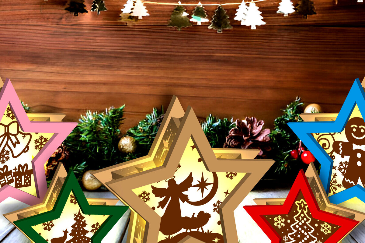 Intra απο ξύλο plywood 3mm-4mm πάχος Lantern Χριστουγέννων Shadow Star Δίασταση 15×15 cm INTRAFABR-109161615