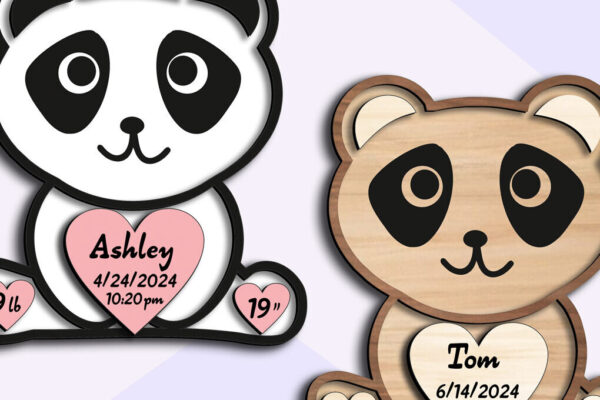 Intra απο ξύλο plywood 3mm-4mm πάχος – Laser αναγγελίας γέννησης μωρού Panda Δίασταση 20×20 cm INTRAFABR-103245729