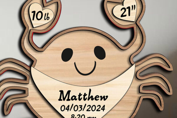 Intra απο ξύλο plywood Χρώμα wenge 3mm-4mm πάχος – Laser Ανακοίνωση Γέννησης Μωρού Καβούρι Δίασταση 30×20 cm INTRAFABR-99709254