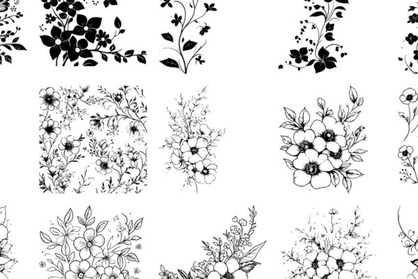 Intra απο ξύλο plywood 3mm-4mm πάχος – Ntricate Μαύρο και άσπρο Floral Γ Δίασταση 20×20 cm INTRAFABR-116611334