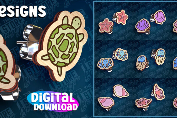 Intra απο ξύλο plywood 3mm-4mm πάχος – Ocean Stud Earrings| Αρχείο CNC Δίασταση 5×5 cm INTRAFABR-93012564