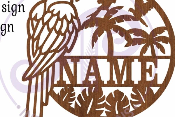 Intra απο ξύλο plywood 3mm-4mm πάχος – Parrot Tropical Theme Sign name Δίασταση 40×30 cm INTRAFABR-93657401