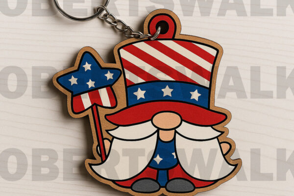 Intra απο ξύλο plywood 3mm-4mm πάχος – Patriotic Gnome Star Keychain Δίασταση 5×5 cm INTRAFABR-122600837