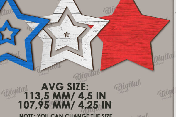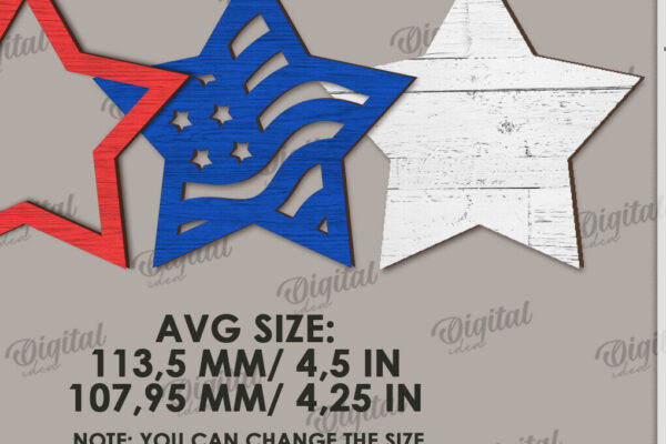 Intra απο ξύλο plywood 3mm-4mm πάχος – Patriotic Stars Decor Bundle Cut Laser Δίασταση 20×20 cm INTRAFABR-122061105