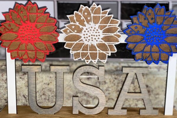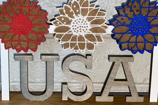 Intra απο ξύλο plywood 3mm-4mm πάχος – Patriotic Sunflowers Shelf Sitter Δίασταση 20×20 cm INTRAFABR-28685052