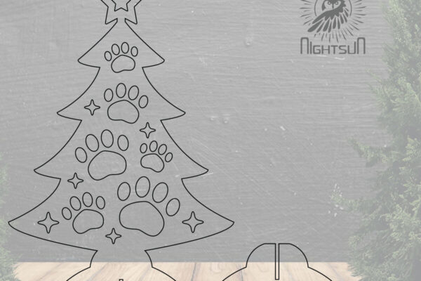 Intra απο ξύλο plywood 3mm-4mm πάχος – Paw Χριστουγεννιάτικο δέντρο με λέιζερ Διακόσμηση σπιτιού Δίασταση 20×20 cm INTRAFABR-112342786