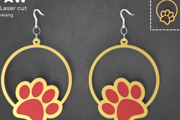 Intra απο ξύλο plywood 3mm-4mm πάχος – Paw Dog Circular, Σκουλαρίκια | Δίασταση 5×5 cm INTRAFABR-93878162