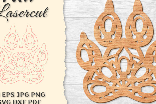Intra απο ξύλο plywood 3mm-4mm πάχος – Paw Mandala Lasercut Δίασταση 20×20 cm INTRAFABR-121332054