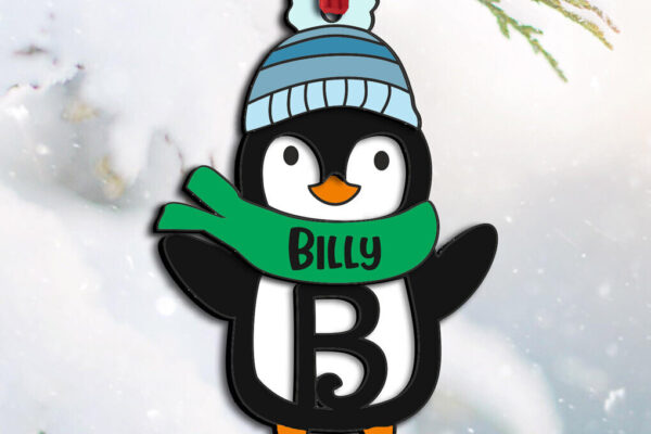 Intra απο ξύλο plywood 3mm-4mm πάχος – Penguin Letter B Χριστουγεννιάτικο Στολίδι Δίασταση 20×20 cm INTRAFABR-109458330