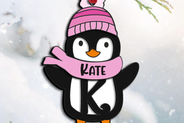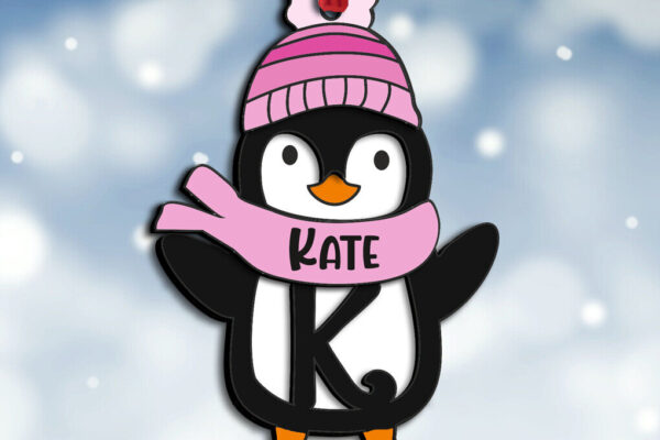 Intra απο ξύλο plywood 3mm-4mm πάχος – Penguin Letter K Γιορτινό στολίδι Δίασταση 20×20 cm INTRAFABR-109528921