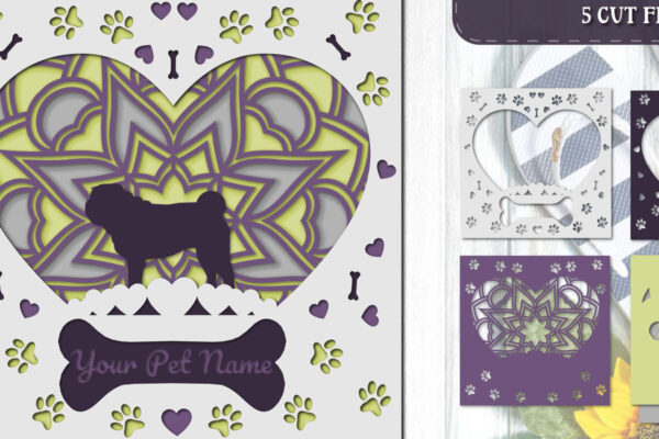 Intra απο ξύλο plywood 3mm-4mm πάχος – Pet Dog 3D Layered Papercut – Pug Δίασταση 20×20 cm INTRAFABR-81324760