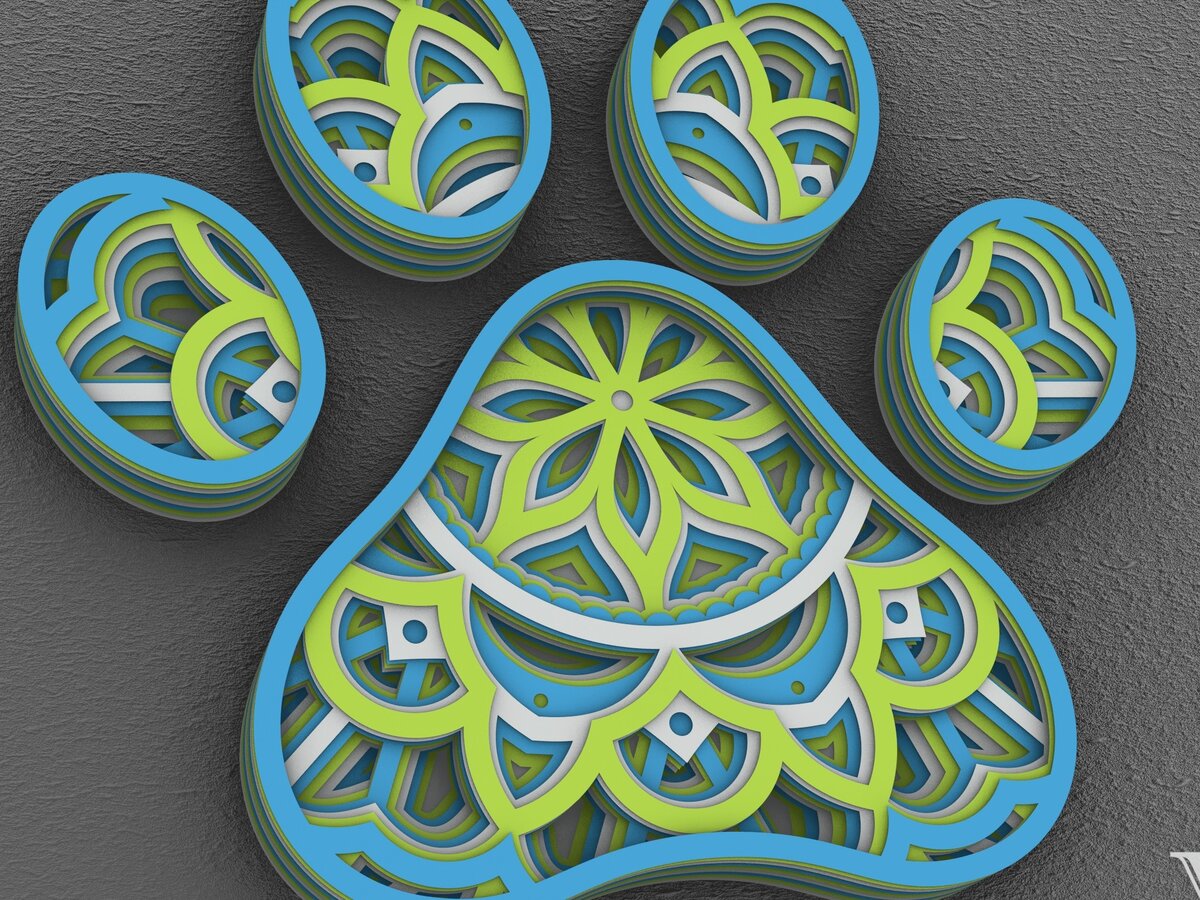 Intra απο ξύλο plywood 3mm-4mm πάχος – Pet Paw 3D Layered Paper Cut, Dog Paw 3D Δίασταση 20×20 cm INTRAFABR-29288875