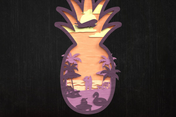 Intra απο ξύλο plywood 3mm-4mm πάχος – Pineapple Beach Scene Layered Δίασταση 20×20 cm INTRAFABR-120349842