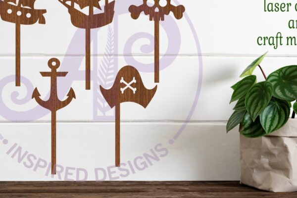 Intra απο ξύλο plywood 3mm-4mm πάχος – Pirate Cupcake Toppers, 6 Σχέδια Δίασταση 20×20 cm INTRAFABR-91393096