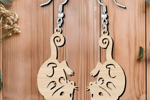 Intra απο ξύλο plywood 3mm-4mm πάχος – Possum Animal Earrings Design Cut Laser Δίασταση 5×5 cm INTRAFABR-120857729
