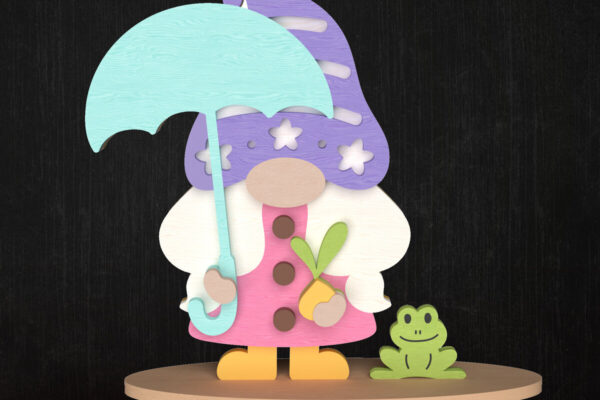 Intra απο ξύλο plywood 3mm-4mm πάχος – Rainy Day Gnome με διακόσμηση βατράχων Δίασταση 20×20 cm INTRAFABR-113514135