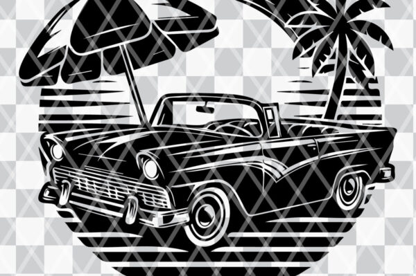 Intra απο ξύλο plywood 3mm-4mm πάχος – Retro Summer Beach Classic Car-v6 Δίασταση 20×20 cm INTRAFABR-117353388