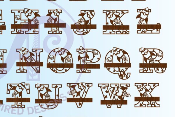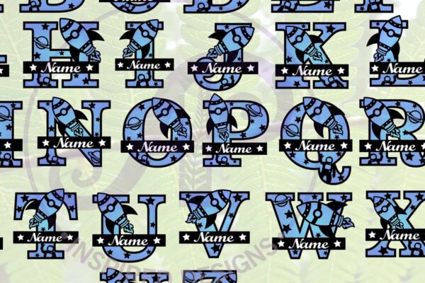 Intra απο ξύλο plywood 3mm-4mm πάχος – Rocket Monogram Name Files Δίασταση 20×20 cm INTRAFABR-69462933
