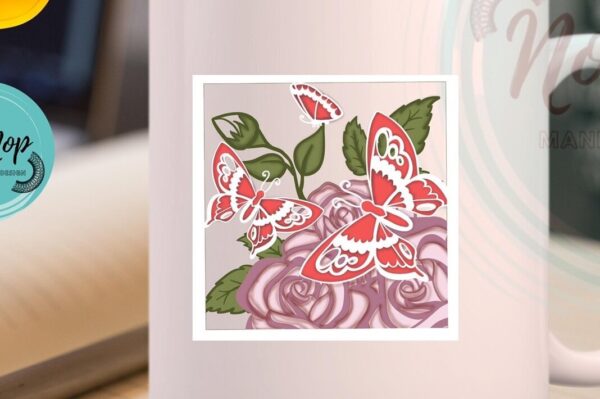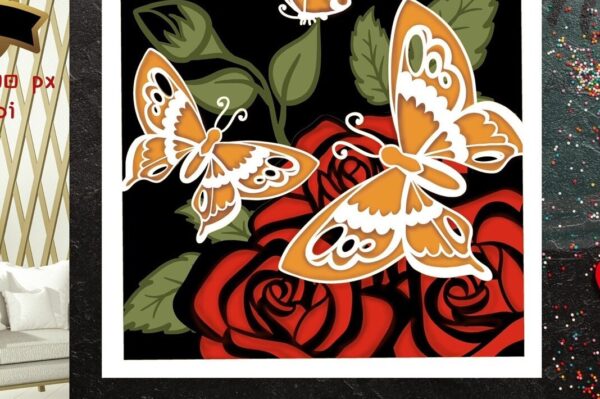 Intra απο ξύλο plywood 3mm-4mm πάχος – Rose and Butterflies 3D Δίασταση 20×20 cm INTRAFABR-56206294