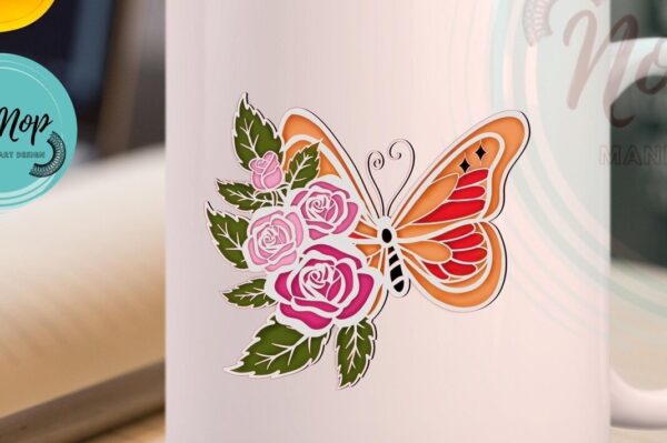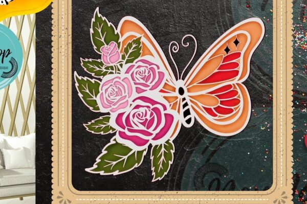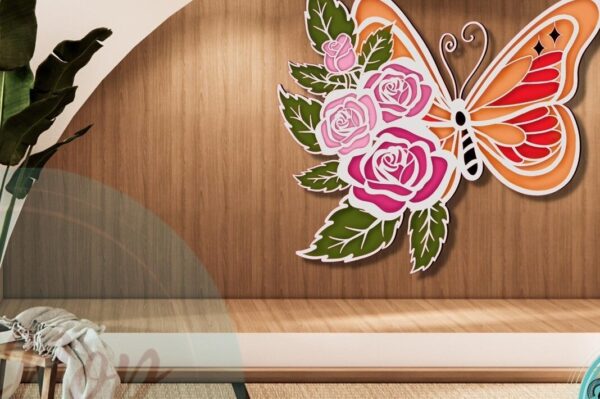 Intra απο ξύλο plywood 3mm-4mm πάχος – Rose and Butterfly 3D V.2 Δίασταση 20×20 cm INTRAFABR-57108996