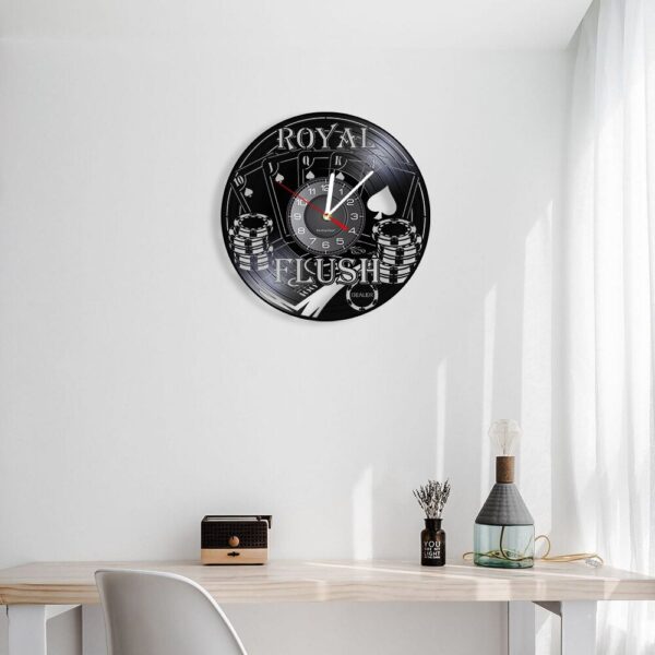Intra απο ξύλο plywood 3mm-4mm πάχος – Royal Flush Poker Ρολόι τοίχου Παιχνίδια καρτών Βινυλίου Διακόσμηση τοίχου Δίασταση 30×30 cm Intraeaxys-6o3ywkr7