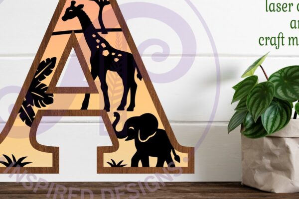 Intra απο ξύλο plywood 3mm-4mm πάχος – Safari Animals Large a Layered Letter Δίασταση 20×20 cm INTRAFABR-114034404
