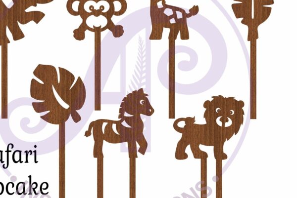 Intra απο ξύλο plywood 3mm-4mm πάχος – Safari Cupcake Toppers, 7 σχέδια Δίασταση 20×20 cm INTRAFABR-95548127