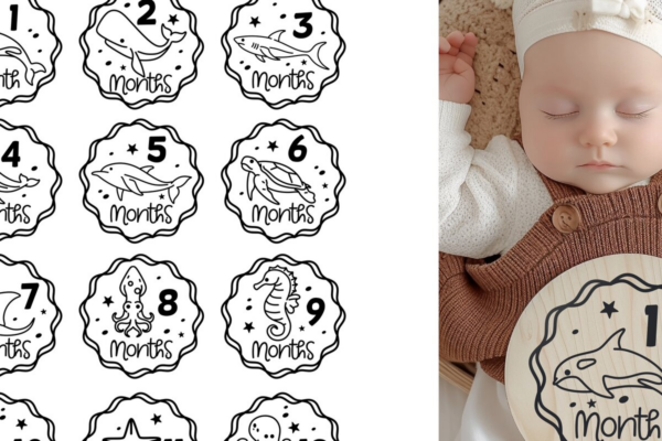 Intra απο ξύλο plywood 3mm-4mm πάχος – Sea Animals Baby Monthly Milestone Δίασταση 20×20 cm INTRAFABR-111580886