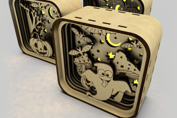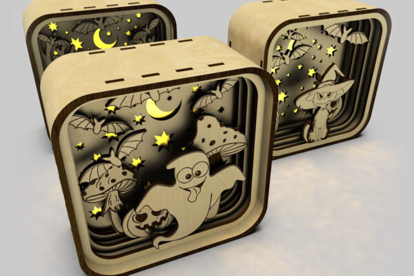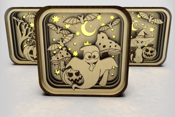 Intra απο ξύλο plywood 3mm-4mm πάχος – Shadow Box για Halloween Σετ 3 τεμαχίων Δίασταση 20×20 cm INTRAFABR-106178104