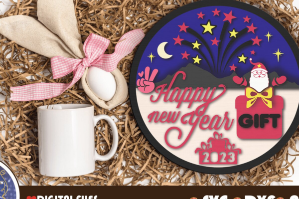 Intra απο ξύλο plywood 3mm-4mm πάχος – Sign Wood Happy New Year 2023 Cut Δίασταση 40×30 cm INTRAFABR-41016671