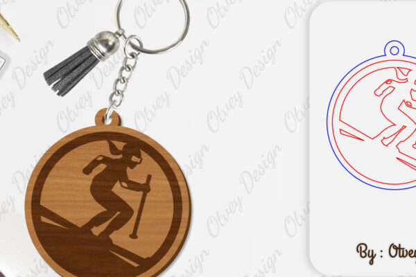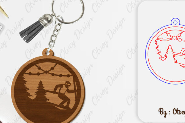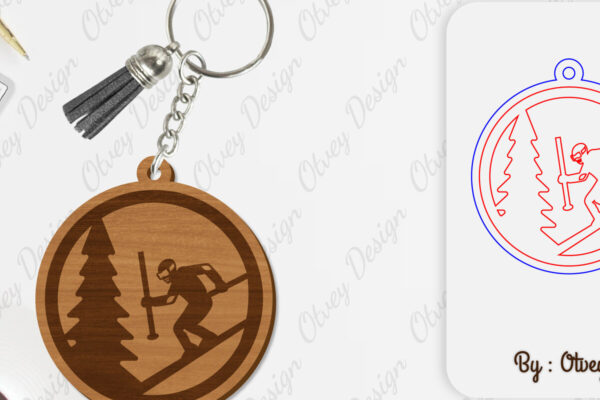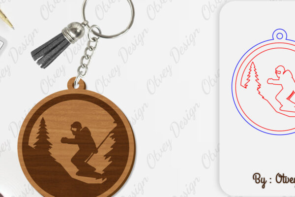 Intra απο ξύλο plywood 3mm-4mm πάχος – Ski Scene Keychain Lasercut Δίασταση 5×5 cm INTRAFABR-112080553