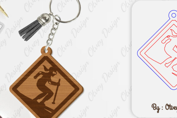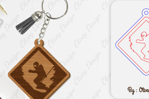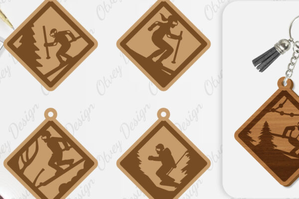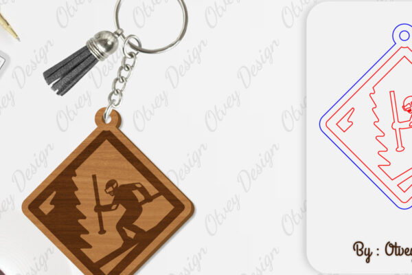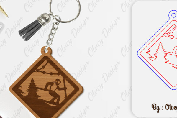 Intra απο ξύλο plywood 3mm-4mm πάχος – Ski Scene Keychain Lasercut Δίασταση 5×5 cm INTRAFABR-112080545