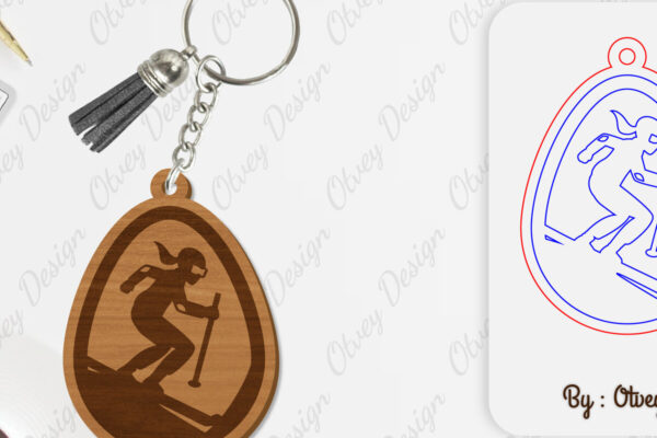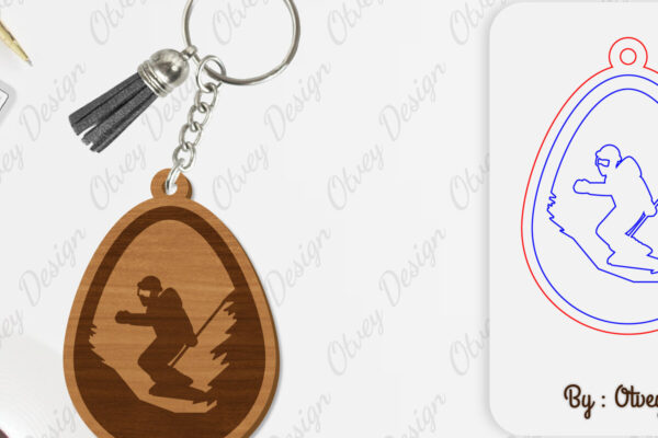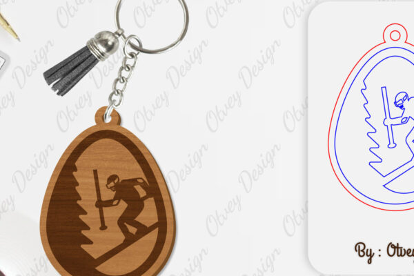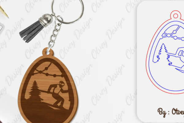 Intra απο ξύλο plywood 3mm-4mm πάχος – Ski Scene Keychain Lasercut Δίασταση 5×5 cm INTRAFABR-112080550