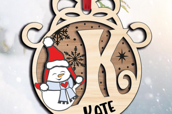 Intra απο ξύλο plywood 3mm-4mm πάχος – Snowman Letter K Χριστουγεννιάτικο Στολίδι Δίασταση 20×20 cm INTRAFABR-110525495