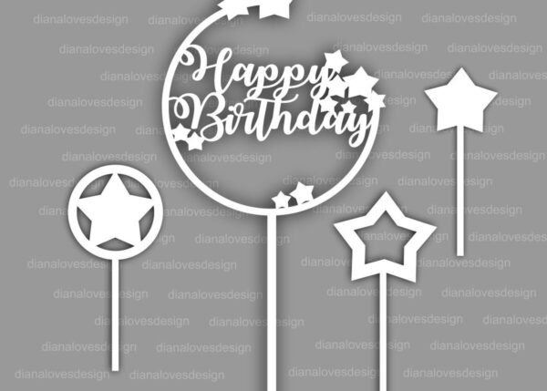 Intra απο ξύλο plywood 3mm-4mm πάχος – Space Happy Birthday Cake Topper Δίασταση 20×20 cm INTRAFABR-30648942