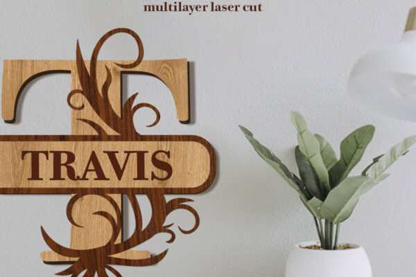 Intra απο ξύλο plywood 3mm-4mm πάχος – Split Name T Monogram Δίασταση 20×20 cm INTRAFABR-80063567