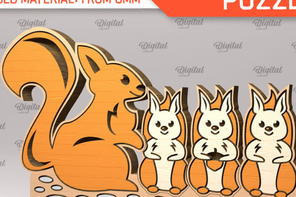 Intra απο ξύλο plywood 3mm-4mm πάχος – Squirrel Family Puzzle Δίασταση 20×20 cm INTRAFABR-99619250