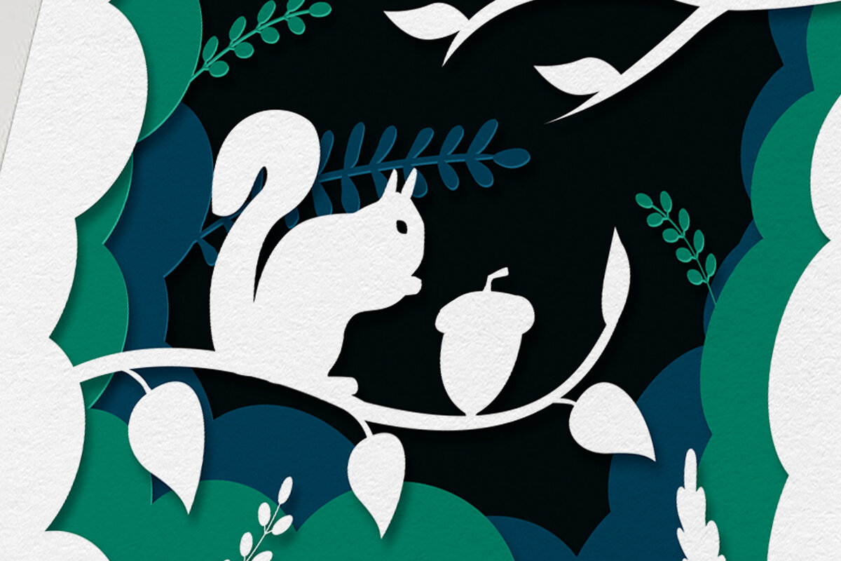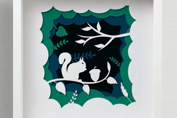 Intra απο ξύλο plywood 3mm-4mm πάχος – Squirrel Forest Shadow Box, 3D χαρτί Δίασταση 20×20 cm INTRAFABR-57913337