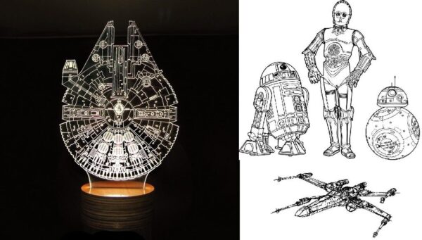 Intra απο ξύλο plywood 3mm-4mm πάχος – Star Wars Millenium Droid 3D Optical Illusion Lamp Δίασταση 30×30 cm Intraeaxys-joed5xn1