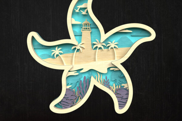 Intra απο ξύλο plywood 3mm-4mm πάχος – Starfish Beach Scene Layered Δίασταση 20×20 cm INTRAFABR-120349673
